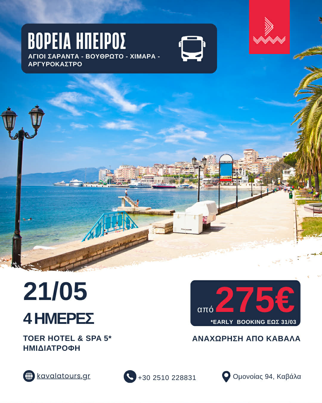 ΒΟΡΕΙΑ ΗΠΕΙΡΟΣ Αγ. Σαράντα – Βουθρωτό – Χιμάρα – Αργυρόκαστρο με αναχώρηση από Καβάλα –